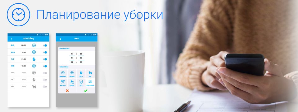 Планирование уборки — это еженедельное расписание, которое позволяет предварительно планировать ежедневную уборку с выбором режимов очистки.